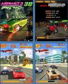 3D гонки с отличной графикой. В игре вам предоставляется возможность прокатится на 9 мощнейших суперкарах и 3-ох мотоциклах. Имеется 5 типов гонок и два режима игры.